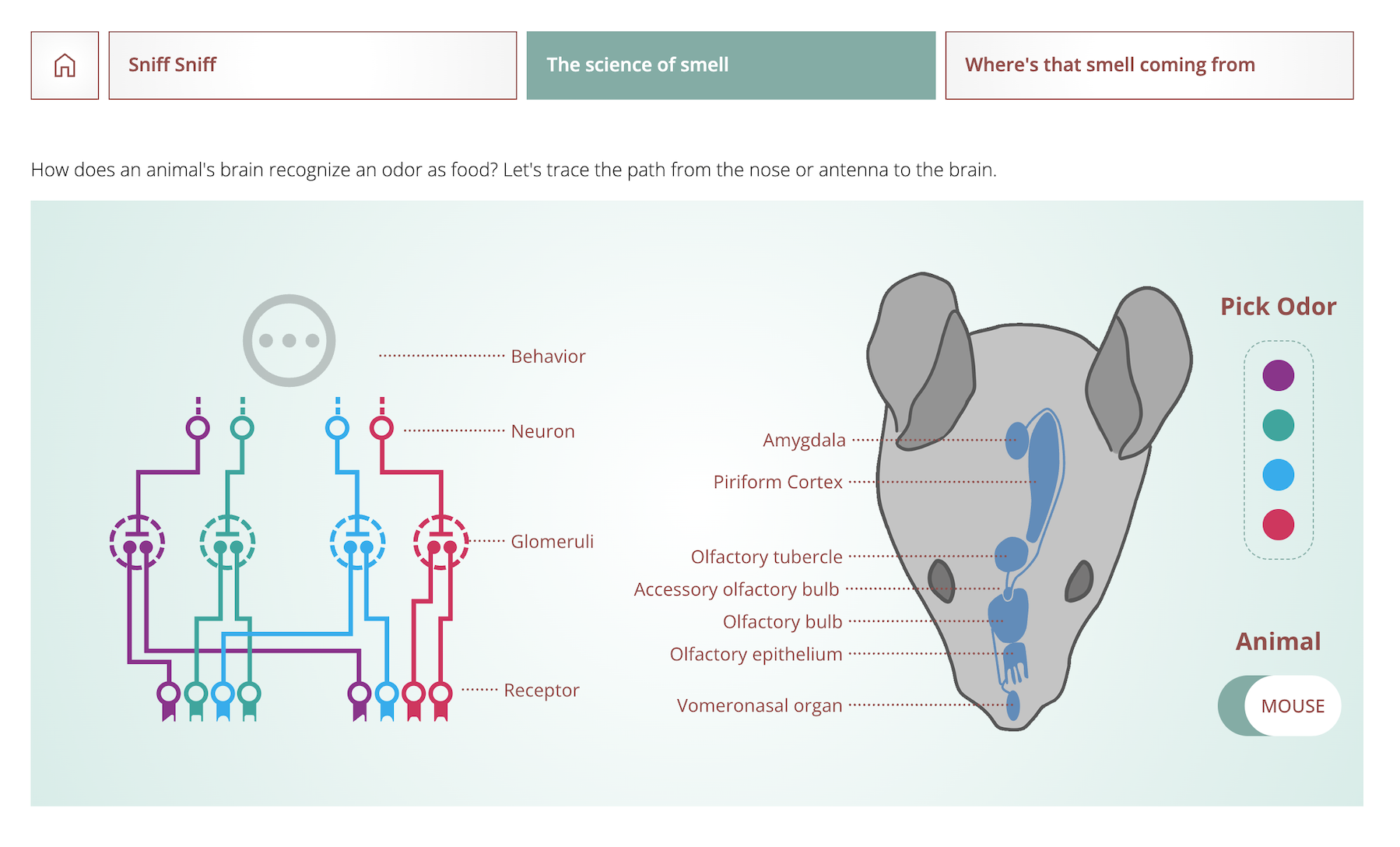 This interactive graphic brings complex primary research to life, letting users choose odors and watch neural pathways animate to the brain. More fun than a textbook? We think so!